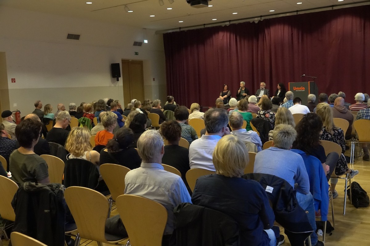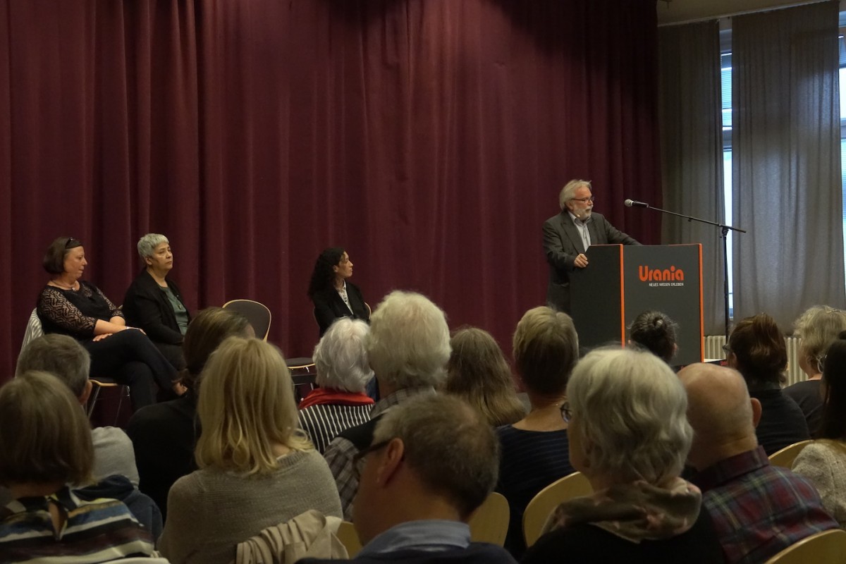 Am 15. Mai 2018 führte die Initiative PRO Neutralitätsgesetz in der URANIA eine Informations- und Diskussionsveranstaltung zum Berliner Neutralitätsgesetz. durch. Mit rund 180 Teilnehmer*innen war die Veranstaltung gut besucht; nach den Einleitungsstatements der PodiumsteilnehmerInnen kam es zu einer lebhaften Diskussion, in der die Bedeutung der Verteidigung des Neutralitätsgesetz gegen jede Aufweichung für den Erhalt des inneren Friedens, des Schulfriedens und zur Verteidigung der Rechte der Schulkinder auf Bildung aus unterschiedlichem Blickwinkel deutlich wurde.